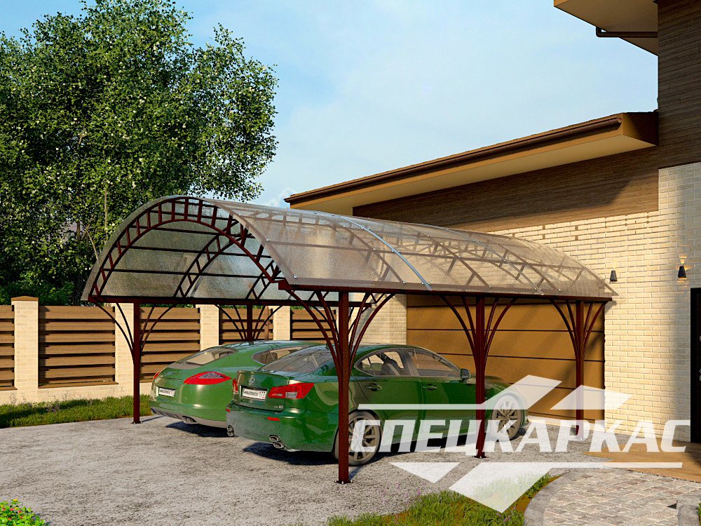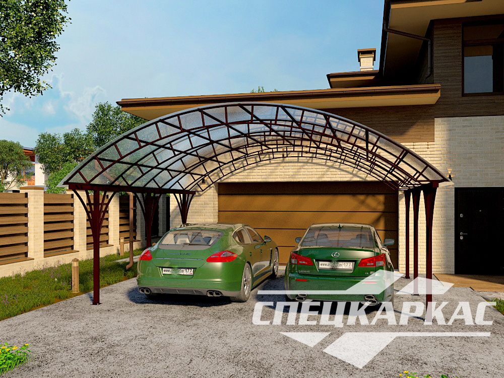 Навес перед гаражом на две машины